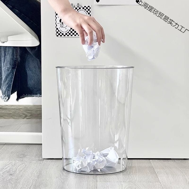 Tong sampah transparan Model ins ember plastik, ember penyimpanan kamar mandi kantor, ember kertas bunga bangun rumah tangga