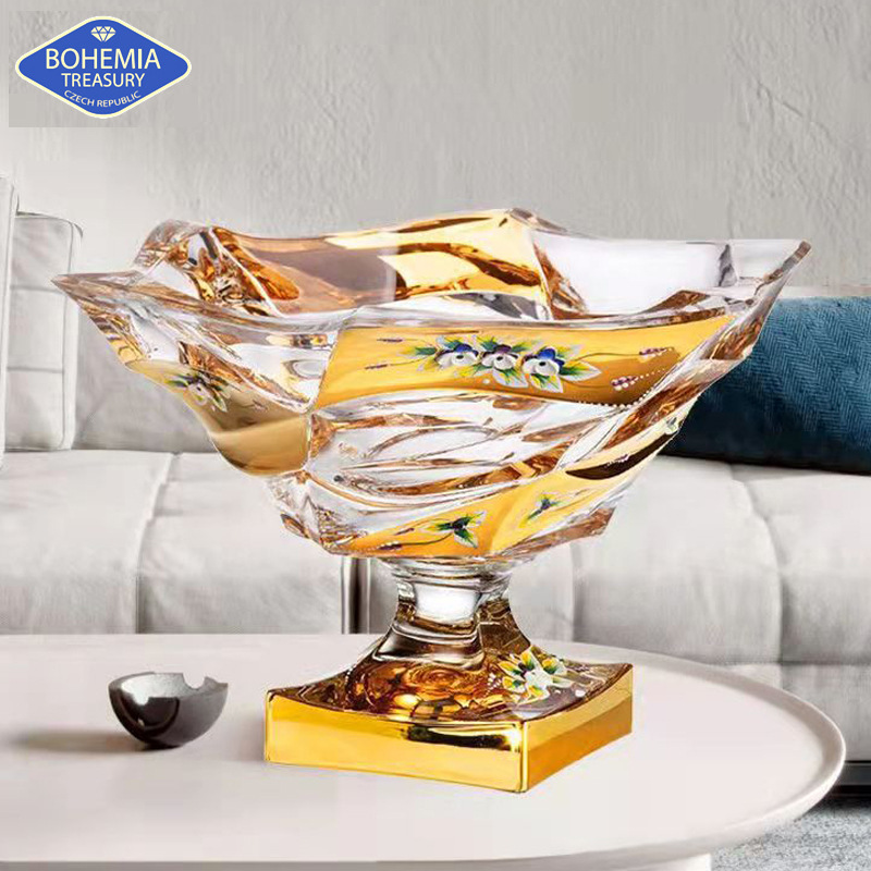 Botol buah kaca kristal enamel bunga emas Impor Ceko pot permen dekorasi ruang tamu baskom buah