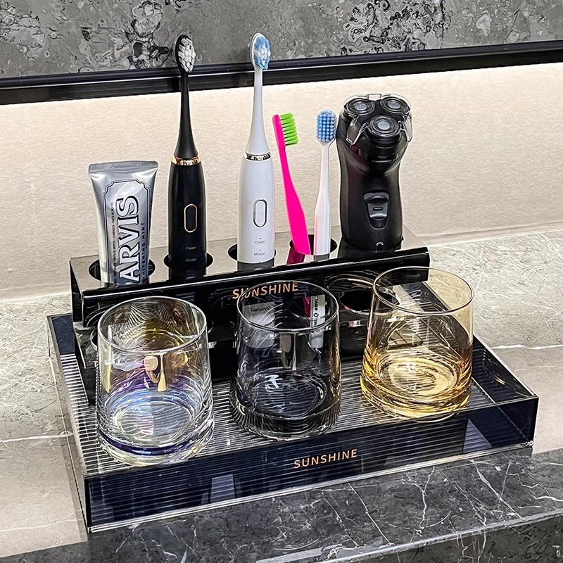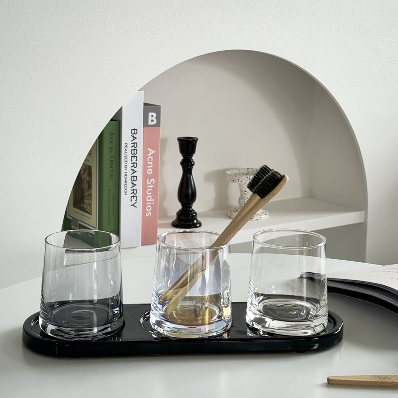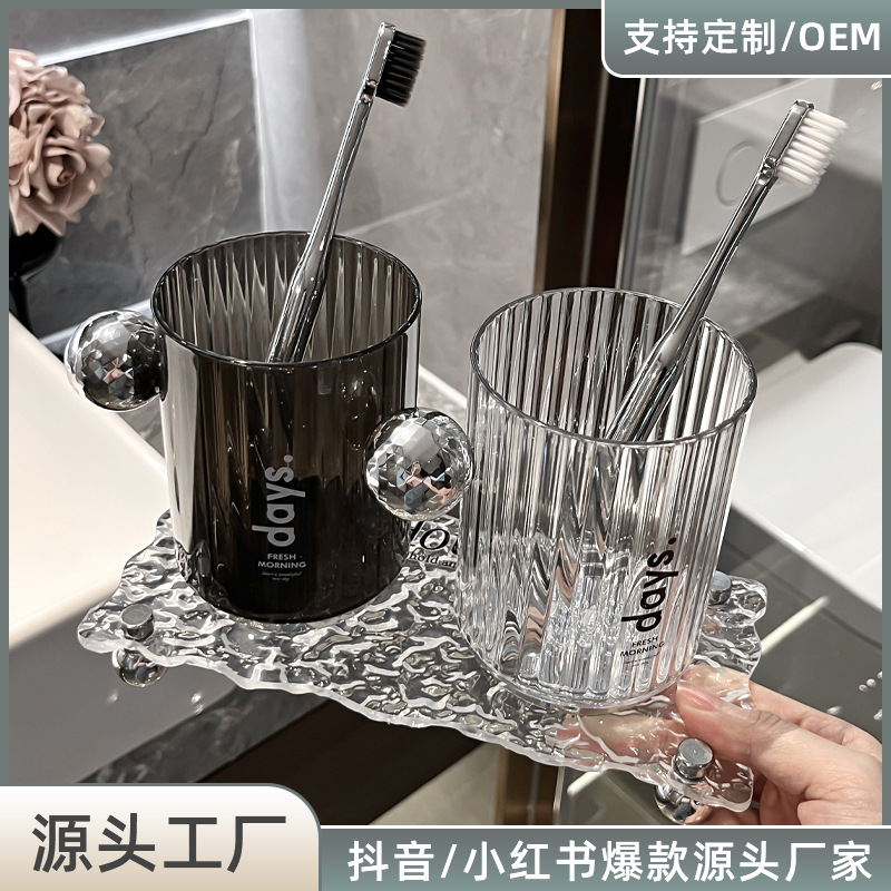 Sikat gigi gaya ins Nordic, setelan ruang kecil, Sikat gigi, cangkir cuci kaca tiga mulut, nampan panjang