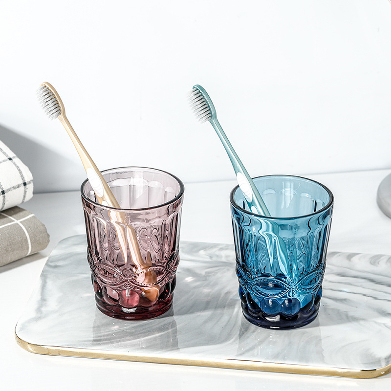 Cangkir kaca tebal, gelas bir sikat gigi gaya Eropa retro timbul warna