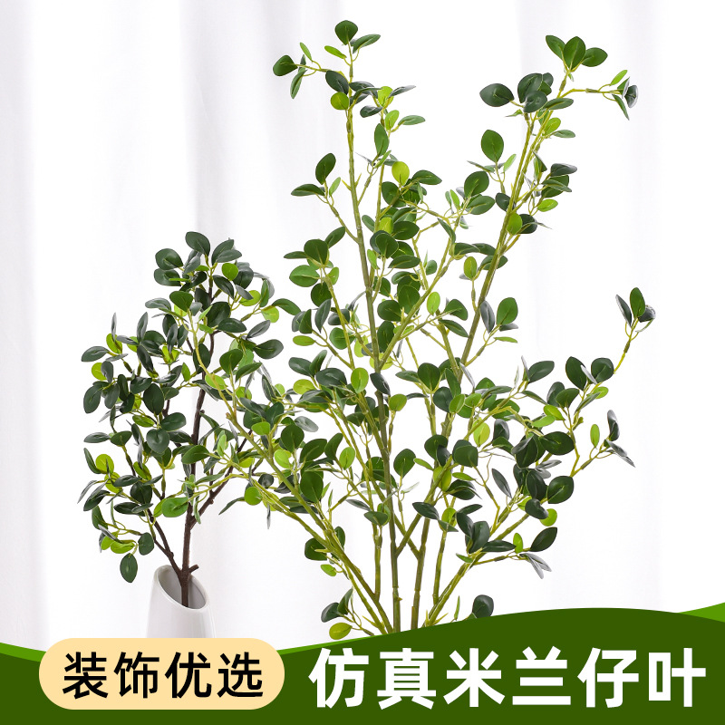 Tanaman bonsai daun milan buatan, dekorasi rumah tanaman hijau buatan cabang tunggal bunga palsu lembut dekorasi aksesoris lanskap