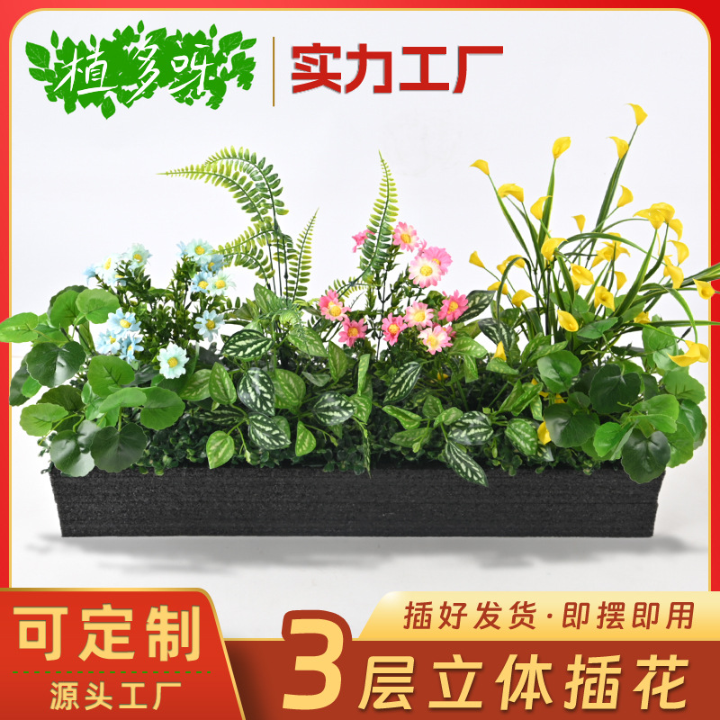 Kotak Bunga Luar Ruangan Kualitas Tinggi Tanaman Bionik Partisi Bunga Imitasi Palung Bunga Pot Bunga Panjang Kombinasi Lansekap Bunga Palsu Tanaman Hijau