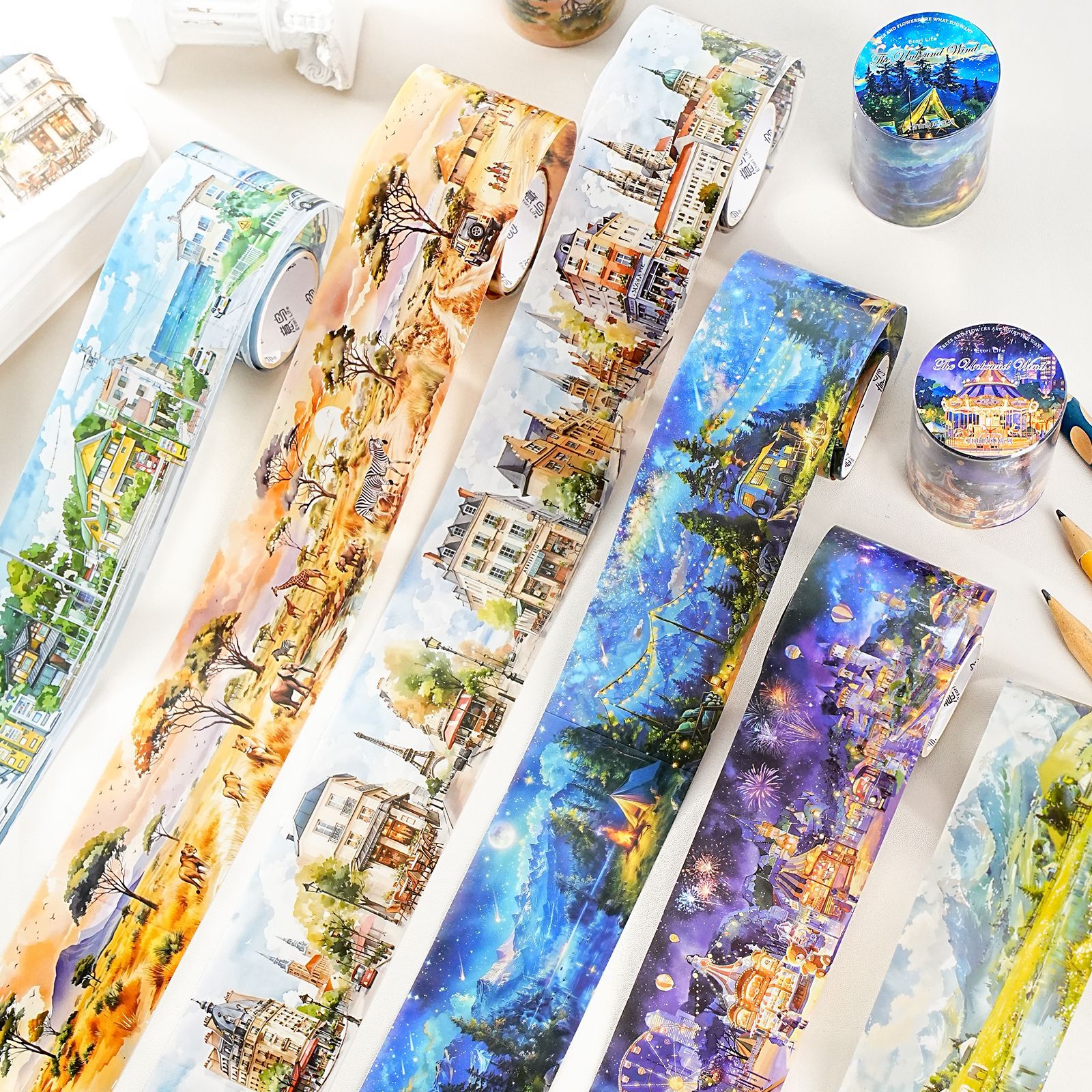 意鸟PET胶带自由的风系列水彩风景造景手帐装饰素材循环贴 6款