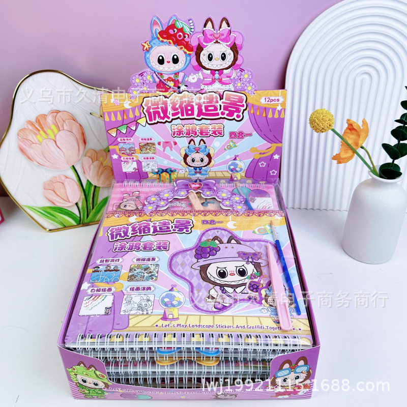 CS-015手提微缩造景涂鸦二合一套装线圈本12入盒装场景布置安静书