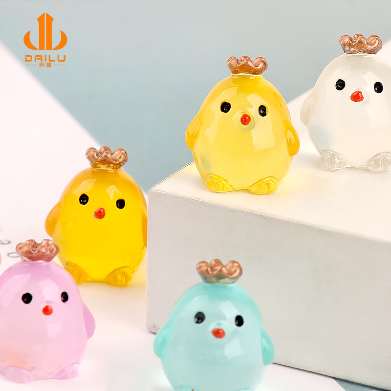 Aksesori resin kreatif mahkota mini bercahaya ayam ornamen lanskap mikro Aksesori ornamen kecil lanskap mikro lumut