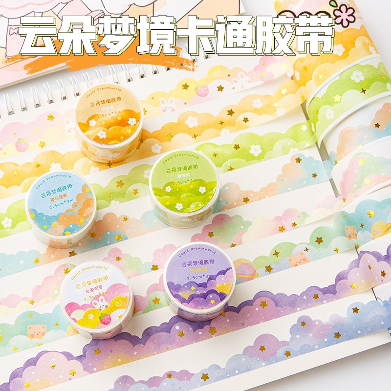 Cloud Dream Hot Stamping Washi Tape Buku Panduan Dekorasi Stiker Kartun Gadis Gelombang Hati Lansekap Bahan Stiker