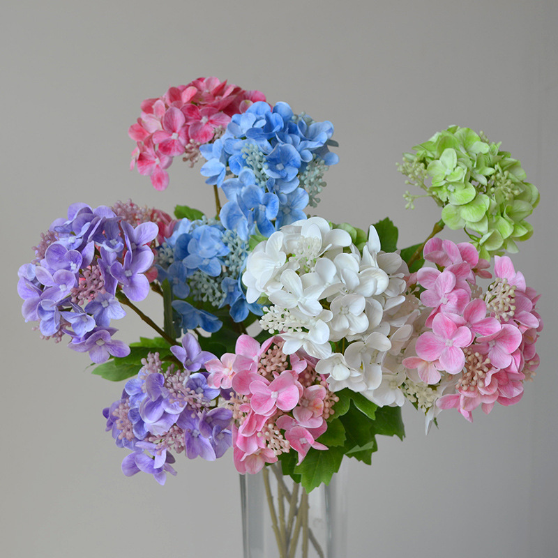 Set pernikahan bunga buatan dekorasi rumah grosir lintas batas lem perasaan tangan cetak 3D bunga palsu hidrangea buah beras 2-kepala