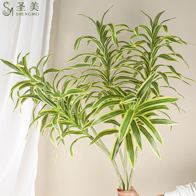 Daun Dedalu buatan rotan Mori dekorasi daun hijau dalam ruangan bunga plastik set tanaman daun buatan grosir