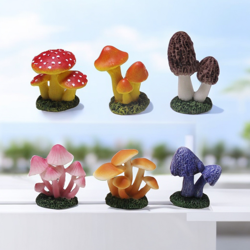 Dekorasi akuarium taman sukulen, kerajinan resin dekorasi model jamur simulasi lanskap mikro lintas batas