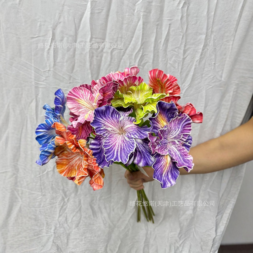 Imitasi EVA Bunga Iris Kepala Tunggal Lukisan Minyak Cabang Tunggal Dekorasi Rumah Jendela Tampilan Rumah Pemandangan Alam Pernikahan
