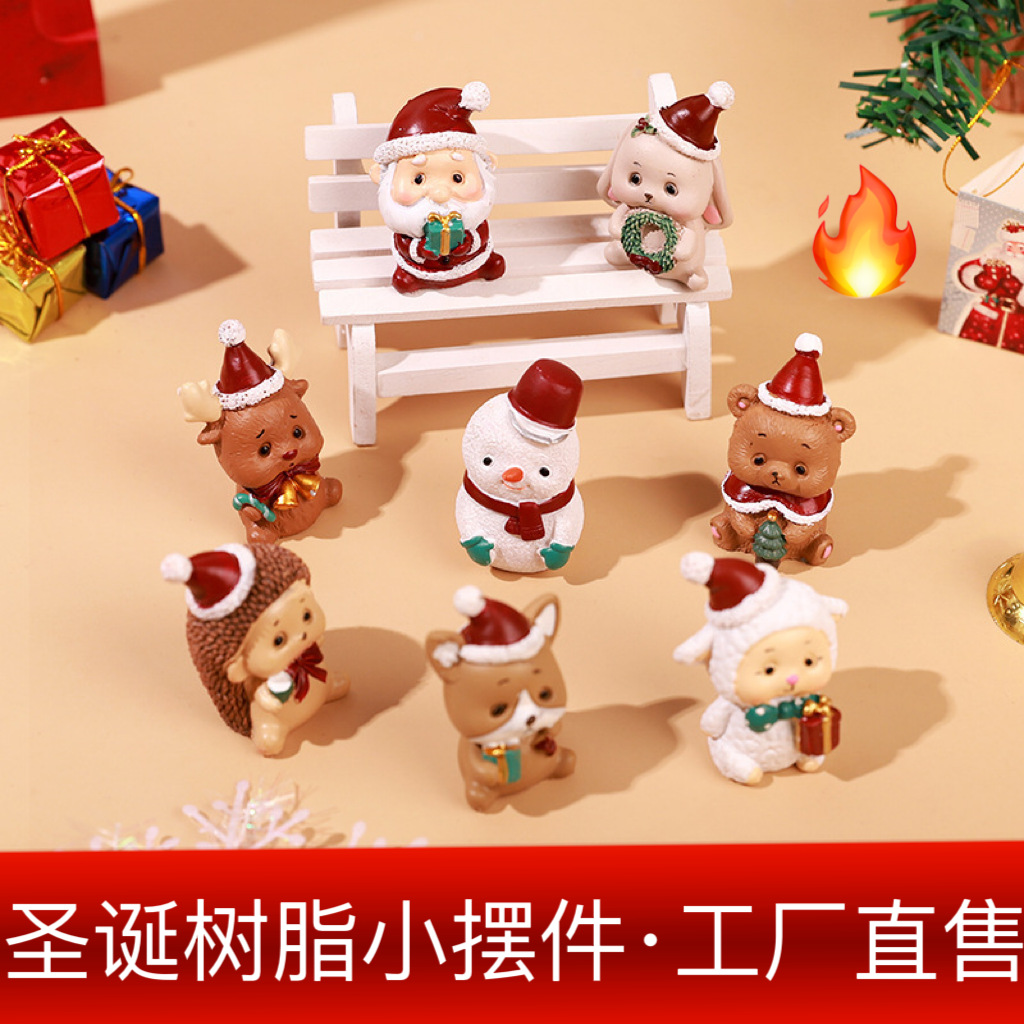 Ornamen kecil Natal pemandangan mikro kartun lucu hadiah kotak buta dekorasi hewan pohon Natal Santa Claus