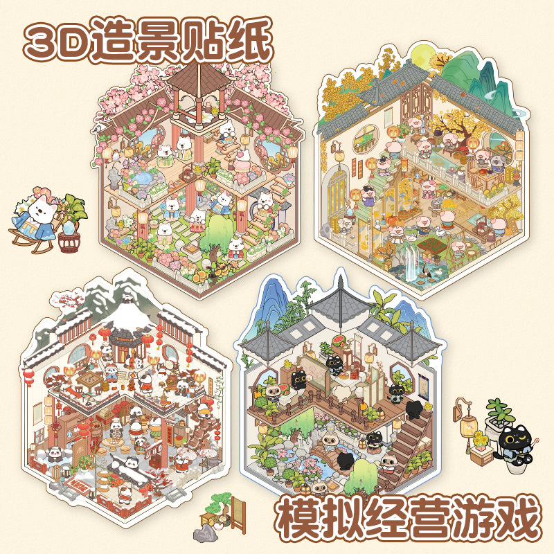 霁旅方岛 古风场景系列造景贴纸 3D立体堆叠DIY手工场景装饰贴纸