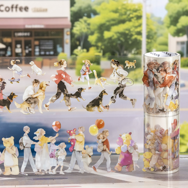 番茄酱造景PET胶带 人来人往 城市人物素材手账diy场景装饰拼贴画