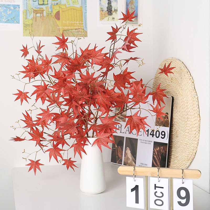 Lintas batas simulasi daun Maple tunggal Jepang merah rasa maple cakar ayam pohon Maple palsu daun taman lanskap dekorasi daun maple