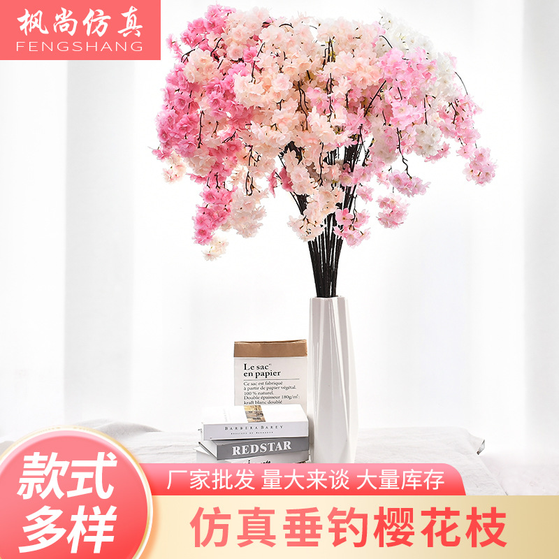Memancing buatan bunga sakura dekorasi pernikahan cabang bunga palsu 4 garpu menggantung bunga sakura cabang pemandangan bunga sakura pohon bunga buatan
