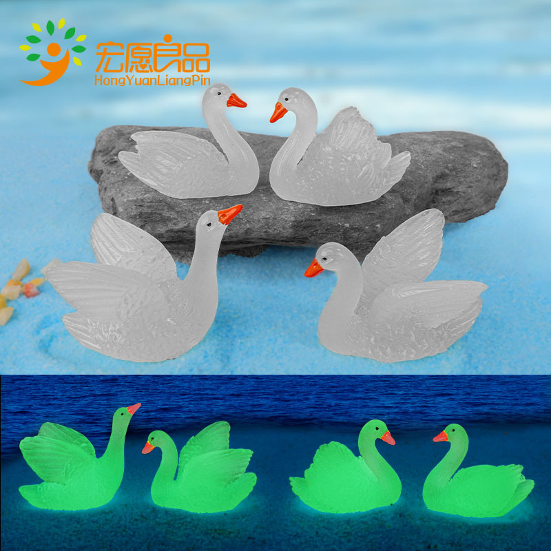 Ornamen kecil bonsai, angsa bercahaya, ornamen kecil pemandangan resin kolam renang ikan dekorasi bonsai atas meja bercahaya