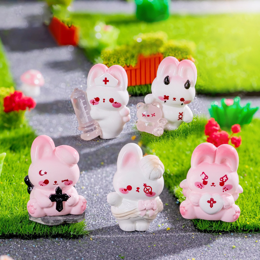 Microscape Animal Kartun Kelinci Merah Muda Hitam Lucu Kelinci Boneka Berkebun Resin Aksesoris Dekorasi Microscape