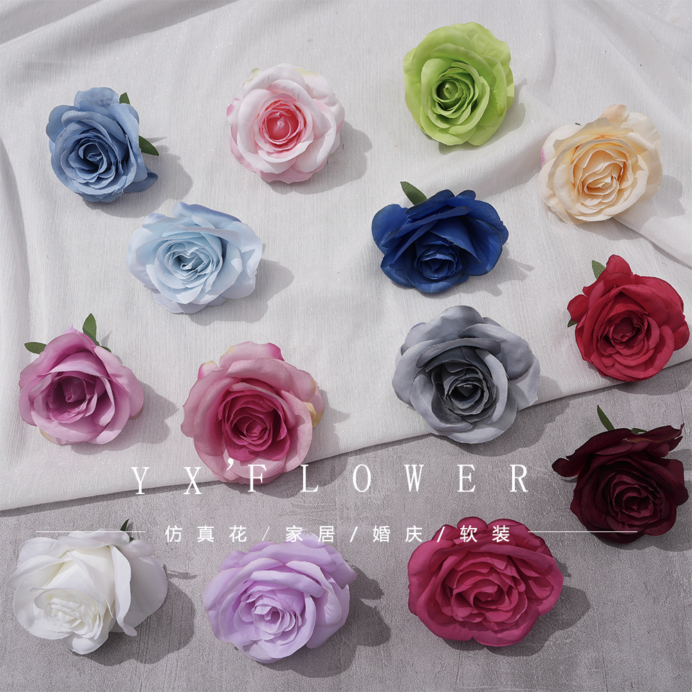 Bulgaria kepala bunga mawar pernikahan bunga mawar kain sutra set kepala bunga palsu dekorasi jalan timah grosir