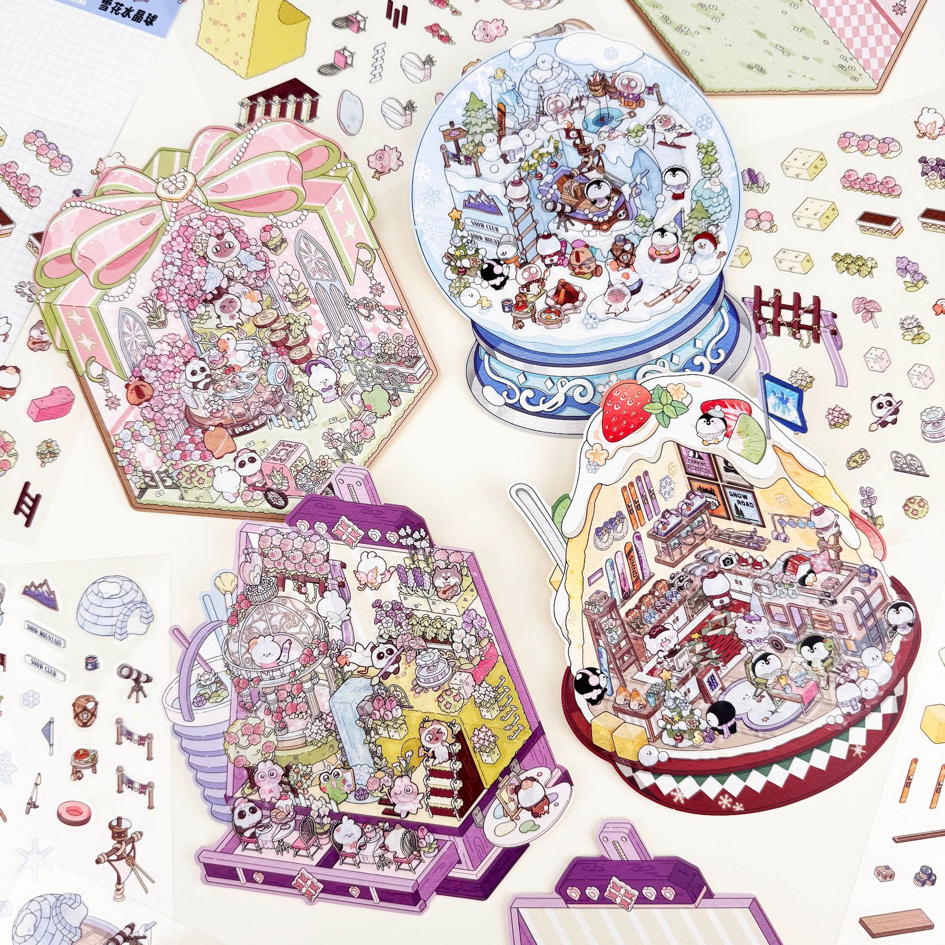 Koleksi Stiker Pemandangan Miniatur Tiga Dimensi Pondok Gaya Korea Stiker Adegan Penumpukan 3D Stiker Bahan Pengurai Swakarya Buatan Tangan