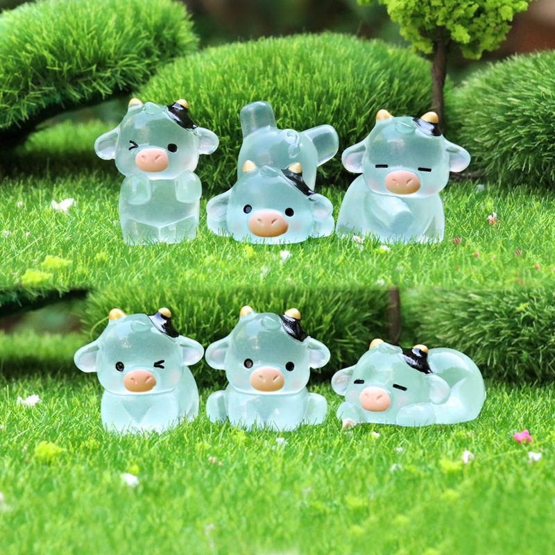 卡通动物公仔迷你可爱夜光透明小奶牛手办模型创意桌面微景观摆件