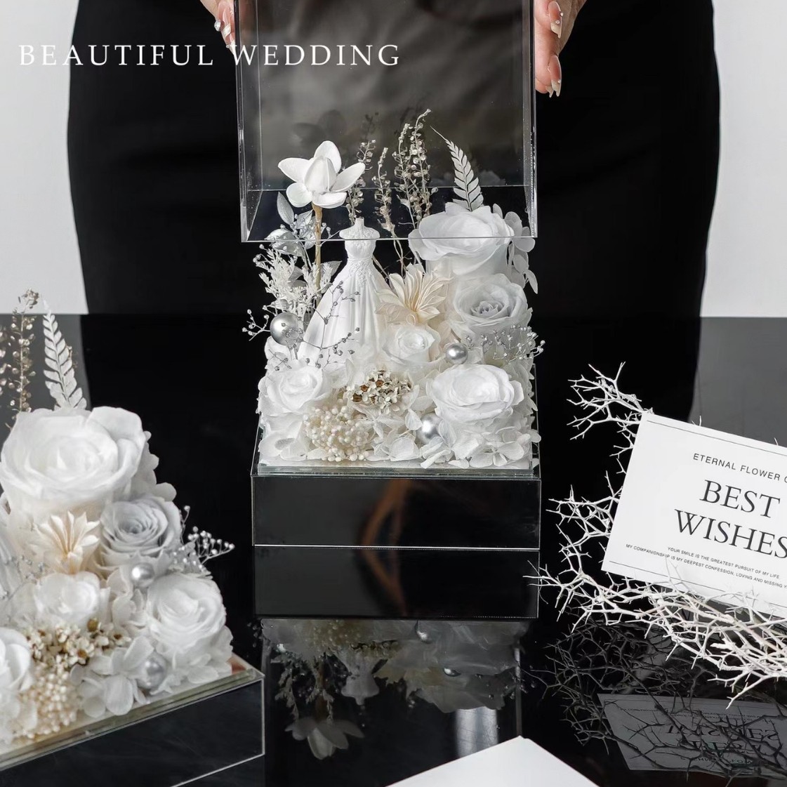 永生花婚纱送闺蜜好友生日结婚表白创意摆件亚克力礼物真花