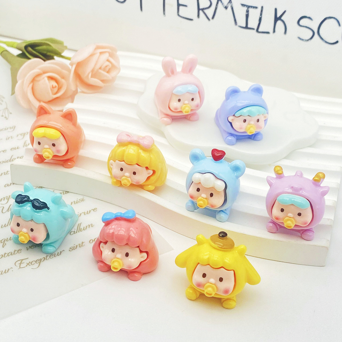 Seri Nini kartun lucu gadis berbaring diy resin lanskap mikro epoksi Aksesori ornamen mainan kreatif