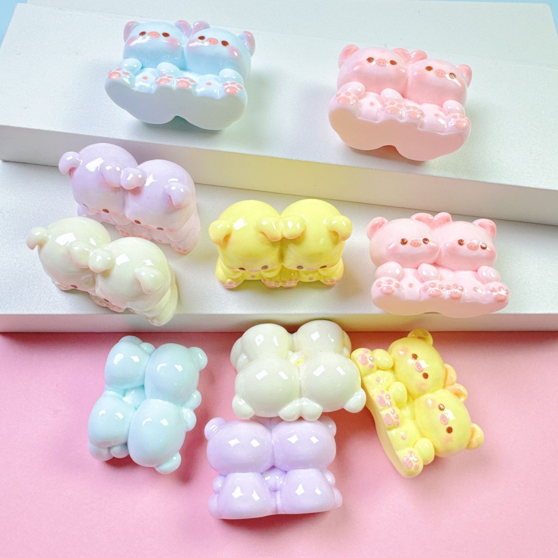 立体 亲子猪猪宝宝DIY手工奶油胶微景观车载摆件吊坠钥匙扣配件批