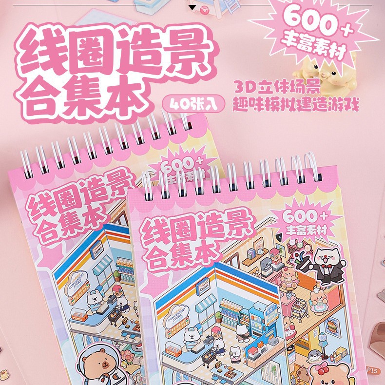 线圈造景合集本儿童玩具女孩造景贴纸微缩场景合集本3d立体贴画书