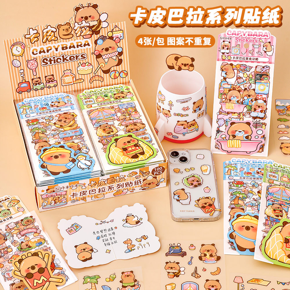 Stiker Capybara Kartun Ins Tas Stiker Penenkung Tangan Anak-anak Casing Ponsel Lucu Kapibara Stiker Kecil DIY