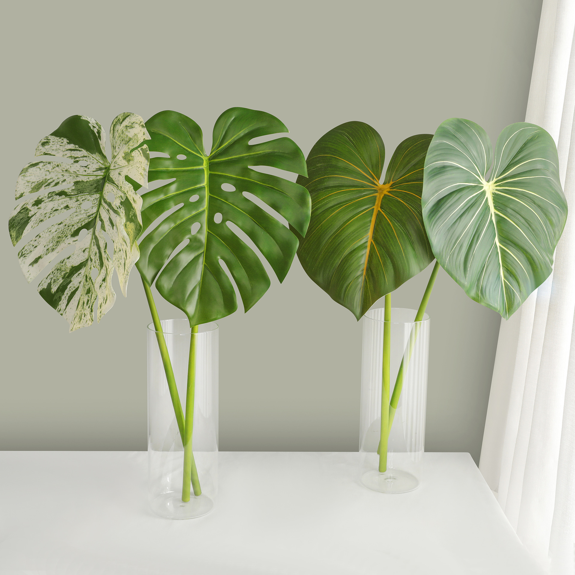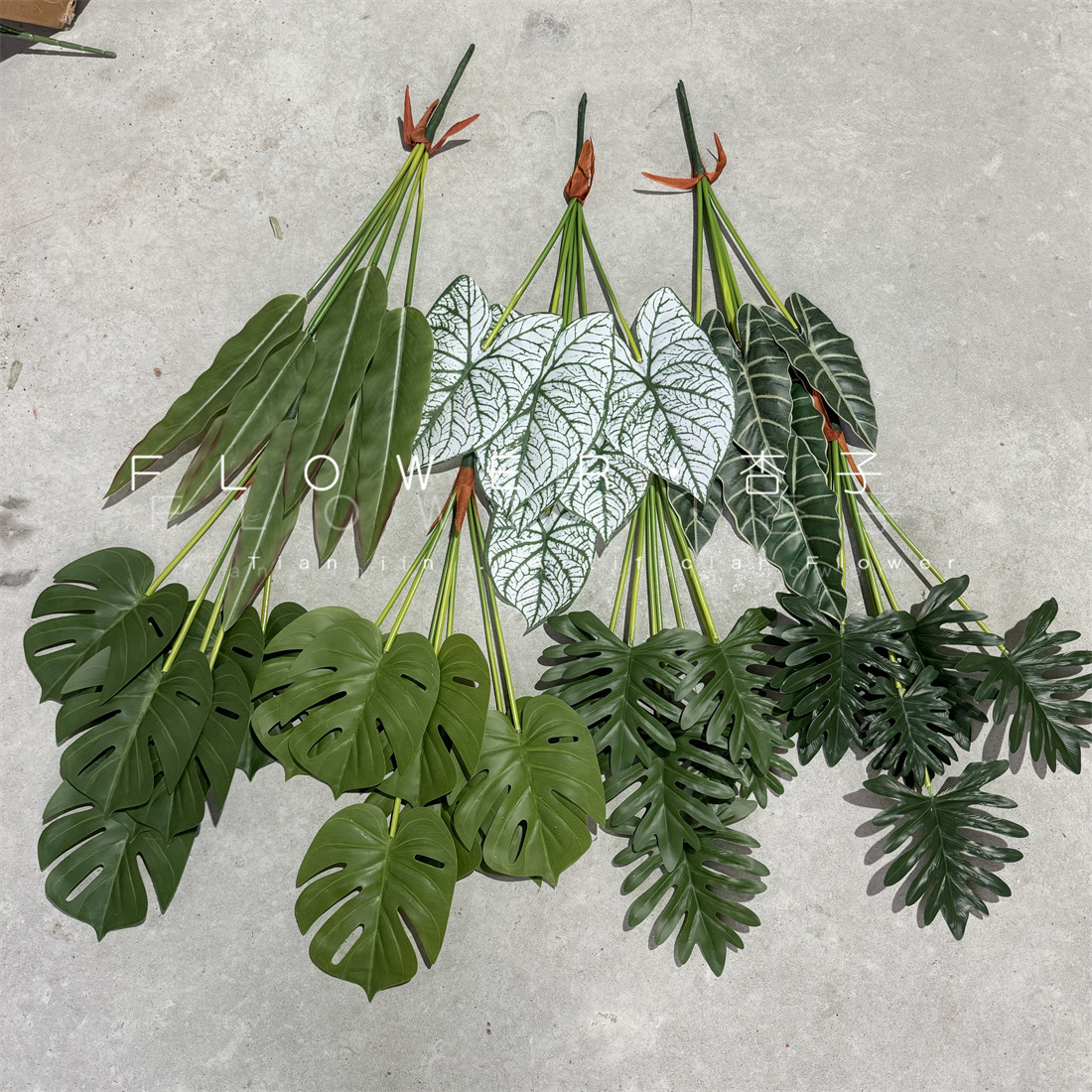 7叉把束中高枝绿植 龟背叶散尾葵大型造景森系插花装饰花艺软装