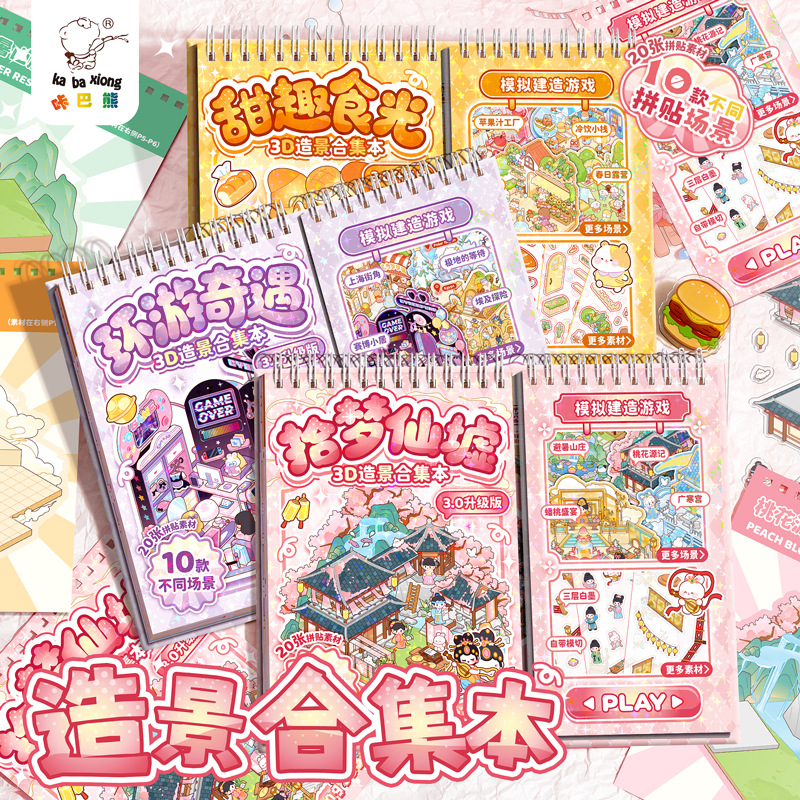 造景贴纸本合集儿童玩具手工立体3D微缩场景贴纸解压手帐拼贴图案
