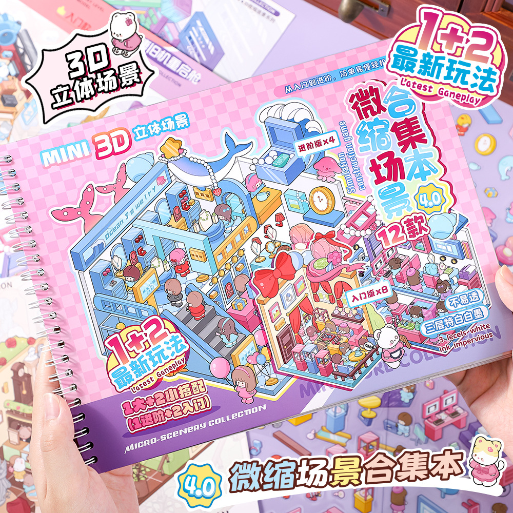 俊贝mini小号盒装微缩场景合集本3d立体造景贴纸套装礼盒解压贴画
