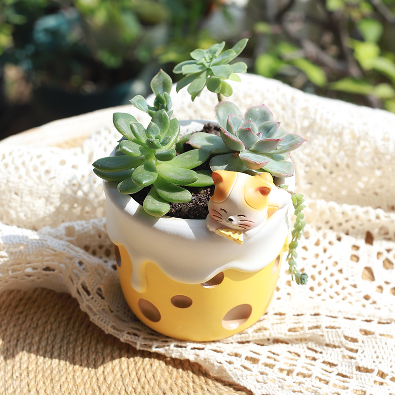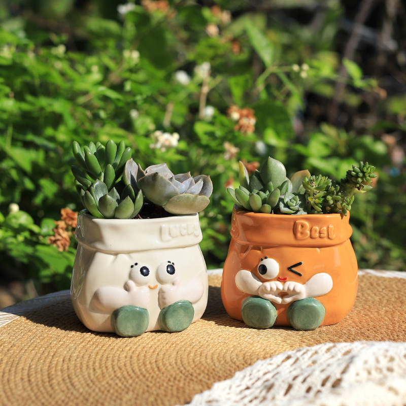 Kreatif Lucu Berkebun Meja Keramik Keramik Keramik Pot Bunga Lanskap Halaman Pot Bunga Kartun Lucu Wadah Pot Bunga Kecil