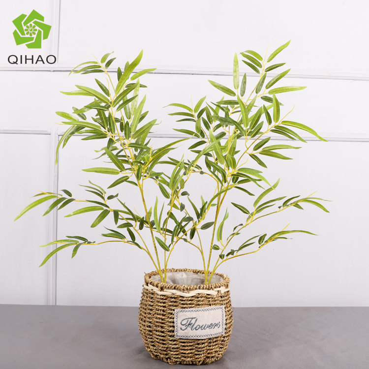 Dekorasi interior Nordic, pot tanaman hijau palsu dekorasi rumah bambu simulasi daun bambu