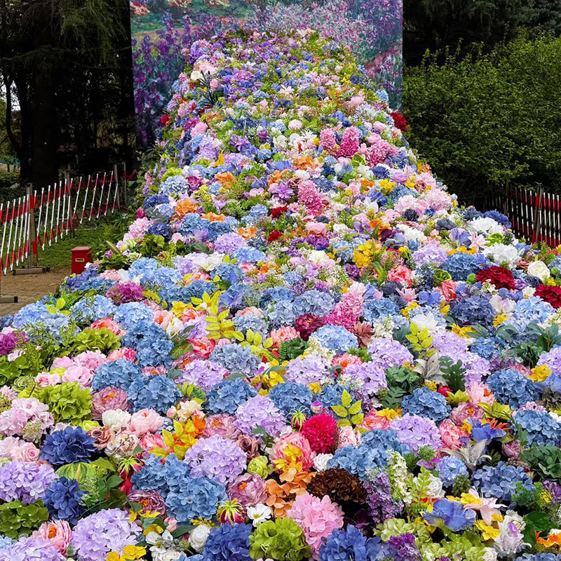 Bunga Imitasi Gaya Taman Monet Upacara Pernikahan Auditorium Pemandangan Jalan
