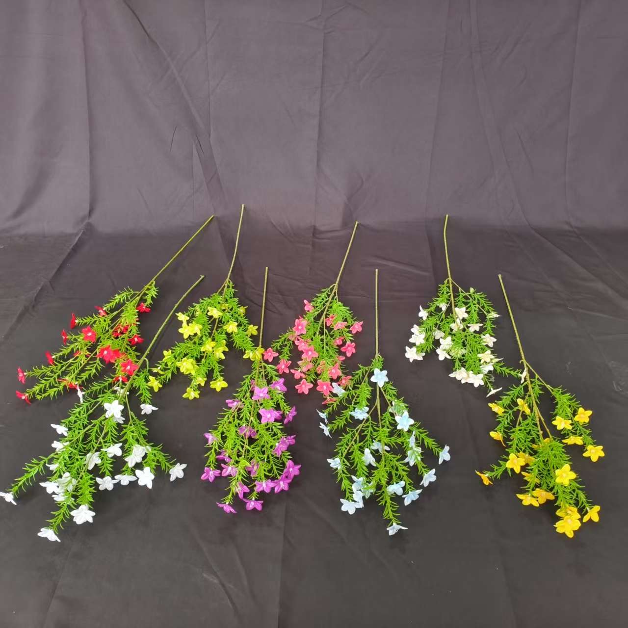Semprotan bunga buatan pernikahan grosir, bunga plastik pengaturan panggung pengaturan bunga pernikahan, dekorasi daun cendana tunggal warna semprot