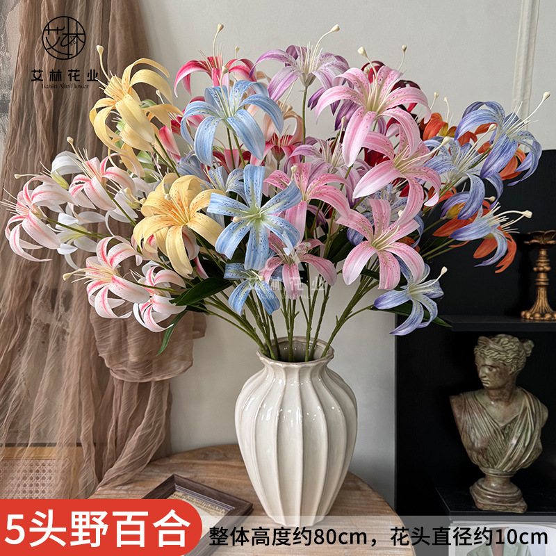 5 kepala bunga lily liar dekorasi bunga dekorasi dekorasi bunga palsu dekorasi bunga 3D dekorasi dekorasi bunga grosir