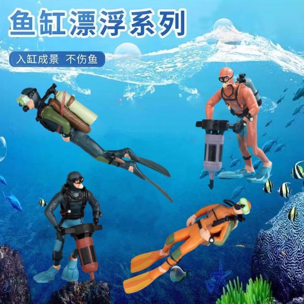 Ornamen lansekap akuarium lintas batas, dekorasi akuarium, figur penonton menyelam, figur penggali harta karun, figur penyelam, dekorasi akuarium.