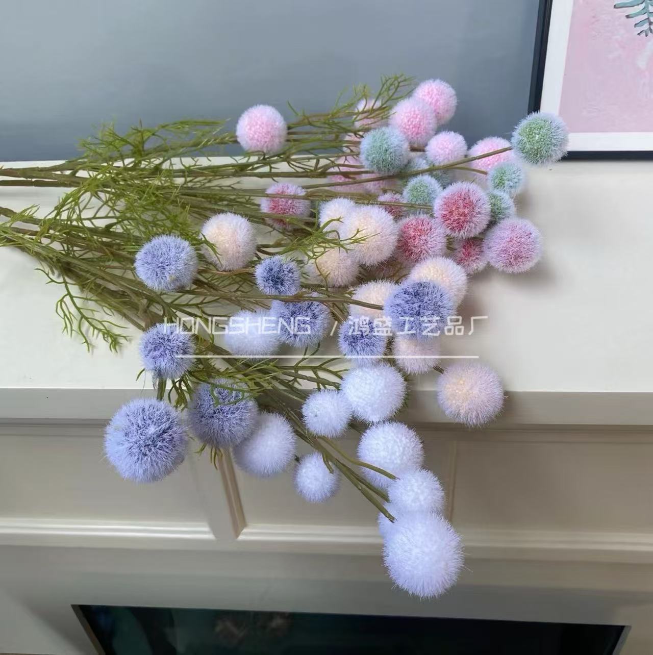 Bola Bulu Dandelion Cabang Tunggal Model Baru Dekorasi Rumah Bunga Imitasi Ruang Pernikahan Auditorium Gaun Lembut Bunga Seni Krisan