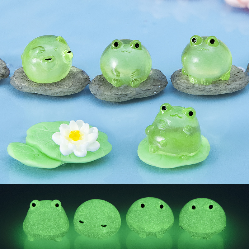 Ornamen mikro-landskap, katak kecil bercahaya, perabot rumah tangga, kerajinan tangan, figurin resin diy yang lucu, dekorasi kerajinan