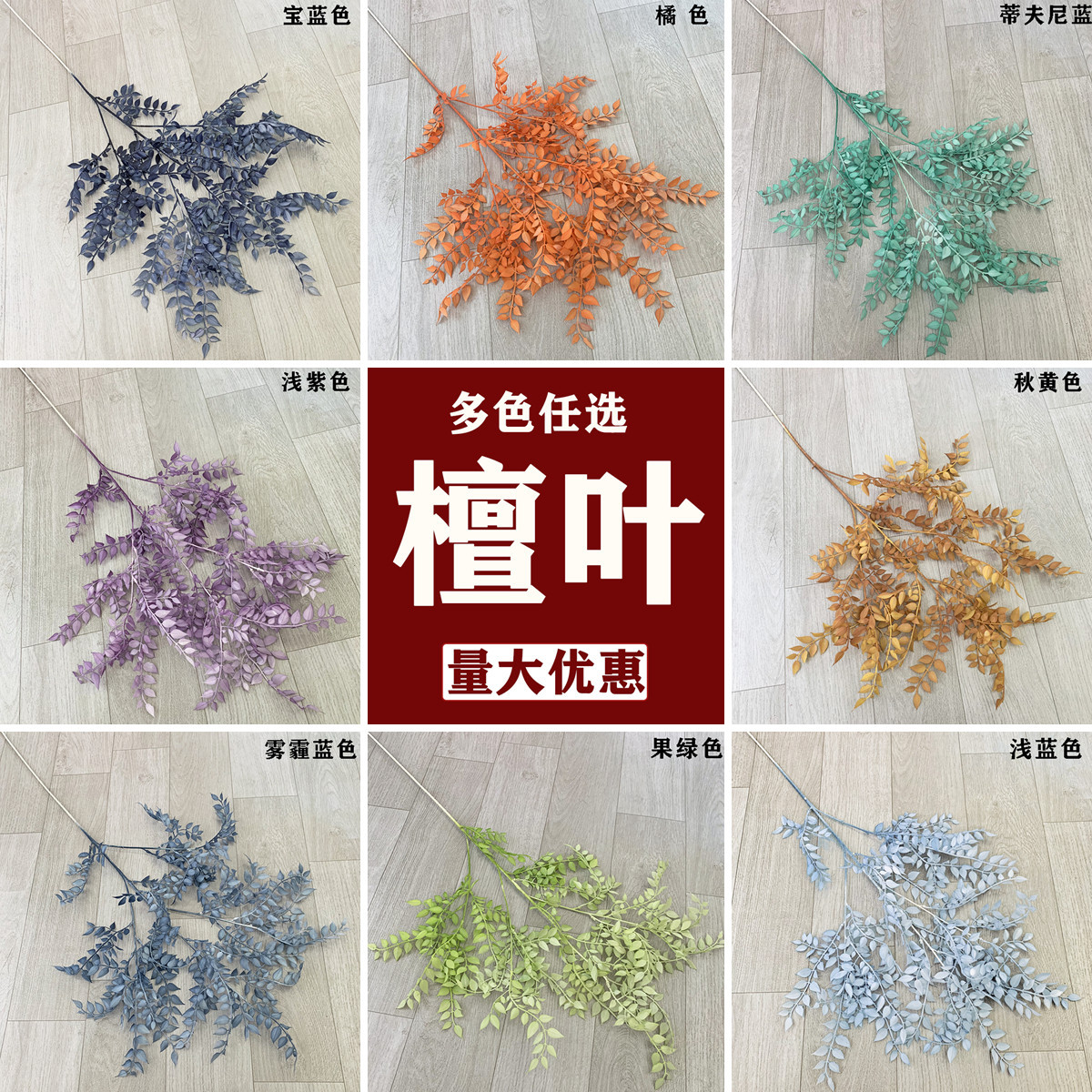 Semprotan bunga buatan pernikahan grosir, bunga plastik pengaturan panggung pengaturan bunga pernikahan, dekorasi daun cendana tunggal warna semprot