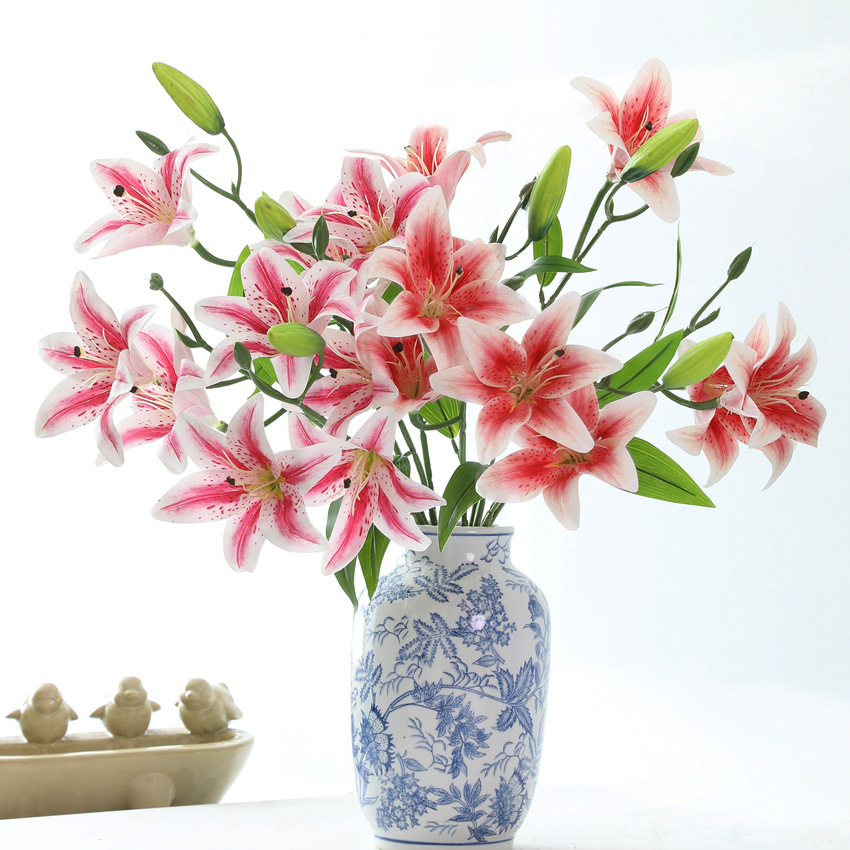 Buket Lili 3D bunga buatan ruang Model 9 Kepala, dekorasi rumah bunga palsu film lily timbal jalan pernikahan kelas atas