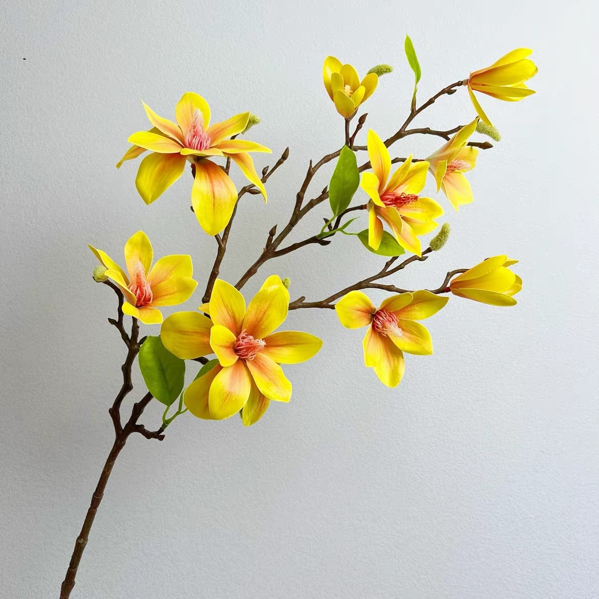 Bunga palsu 9-kepala Magnolia, bunga magnolia buatan baixianglan, dekorasi lanskap pernikahan ruang tamu rumah