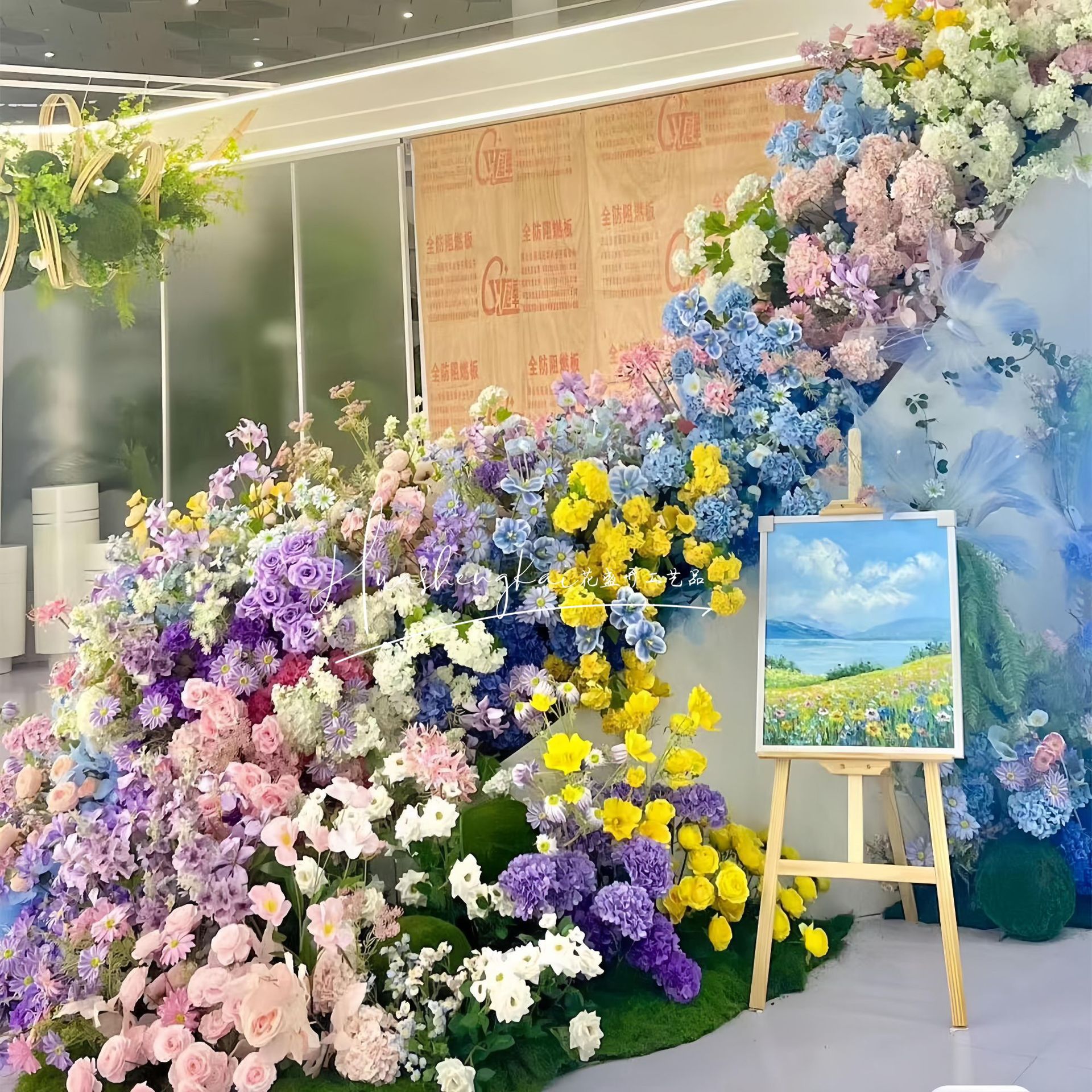 Bunga Imitasi Gaya Taman Monet Gaya Lukisan Minyak Gaya Pernikahan Rasa Tinggi Auditorium Pemandangan Jalan Dekorasi Pernikahan Bunga Palsu