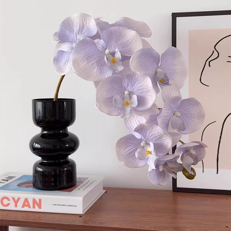 Bunga buatan kembang phalaenopsis, hiasan karangan bunga buatan 9 Kepala gaya Eropa untuk dekorasi ruang tamu
