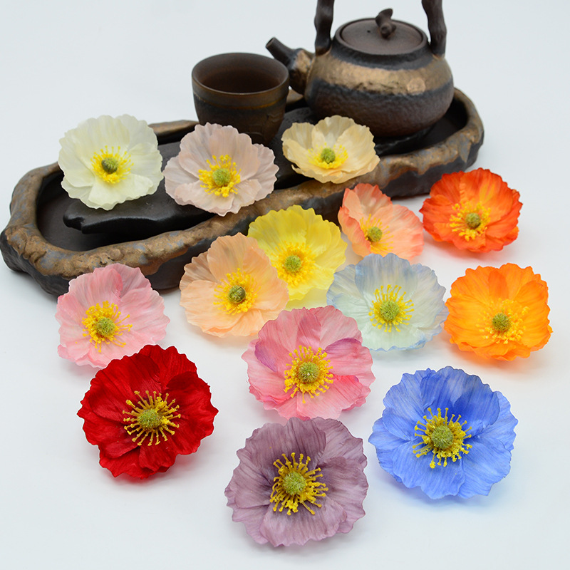 仿真花虞美人花朵罂粟花头diy头饰发簪配花餐桌摆盘伴手礼盒装饰