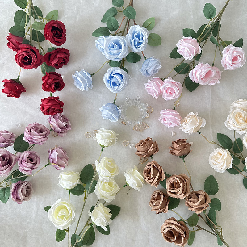 Set dekorasi foto pernikahan mawar tepi gulung 7 kepala kain disikat bunga palsu aksesoris rumah bunga buatan mawar buatan