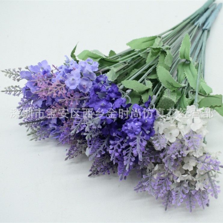 Buket bunga palsu plastik 10 kepala, buket palsu lavender, dekorasi pernikahan, pabrik bunga sutra