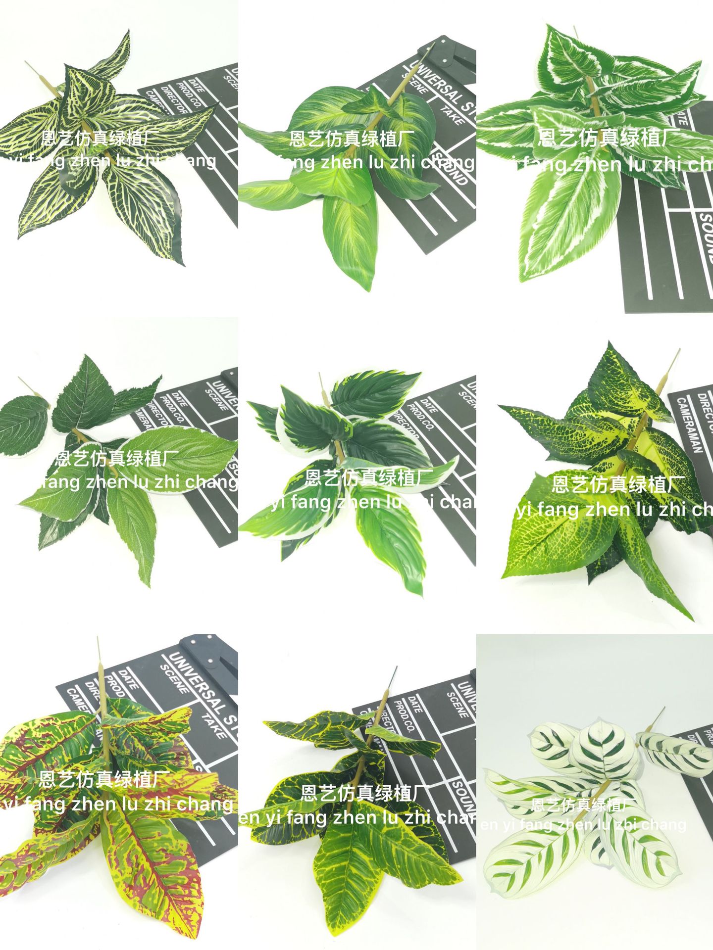 Pabrik langsung simulasi tanaman hijau 9 daun besar simulasi warna berubah kayu sprinkling Banyan simulasi tanaman laminasi aksesoris dinding