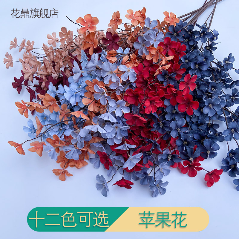 Bunga apel palsu 3 garpu cabang tinggi, bunga Wenxin warna biru musim semi dan musim gugur pernikahan hotel langit-langit dekorasi lanskap teknik